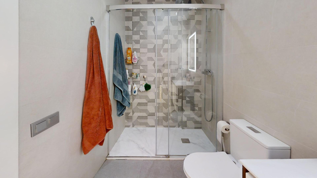 Renovated bathroom with a modern shower tray and top-quality finishes.