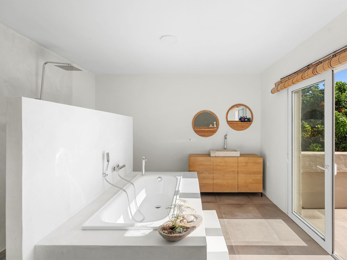 Inside, the villa features 2 bedrooms, easily posible to add one and change into 3 bedrooms, 2 bathrooms, including a spacious master suite with a true hotel-style vibe, your own private retreat. The bright and open layout creates a welcoming atmosphere, ideal for both relaxing and entertaining.