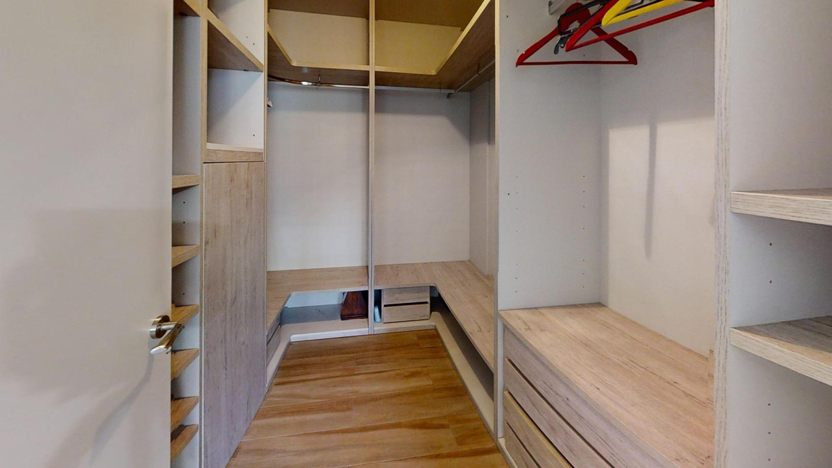 Master bedroom with elegant walk-in wardrobe and en-suite bathroom, creating a high-end private retreat.