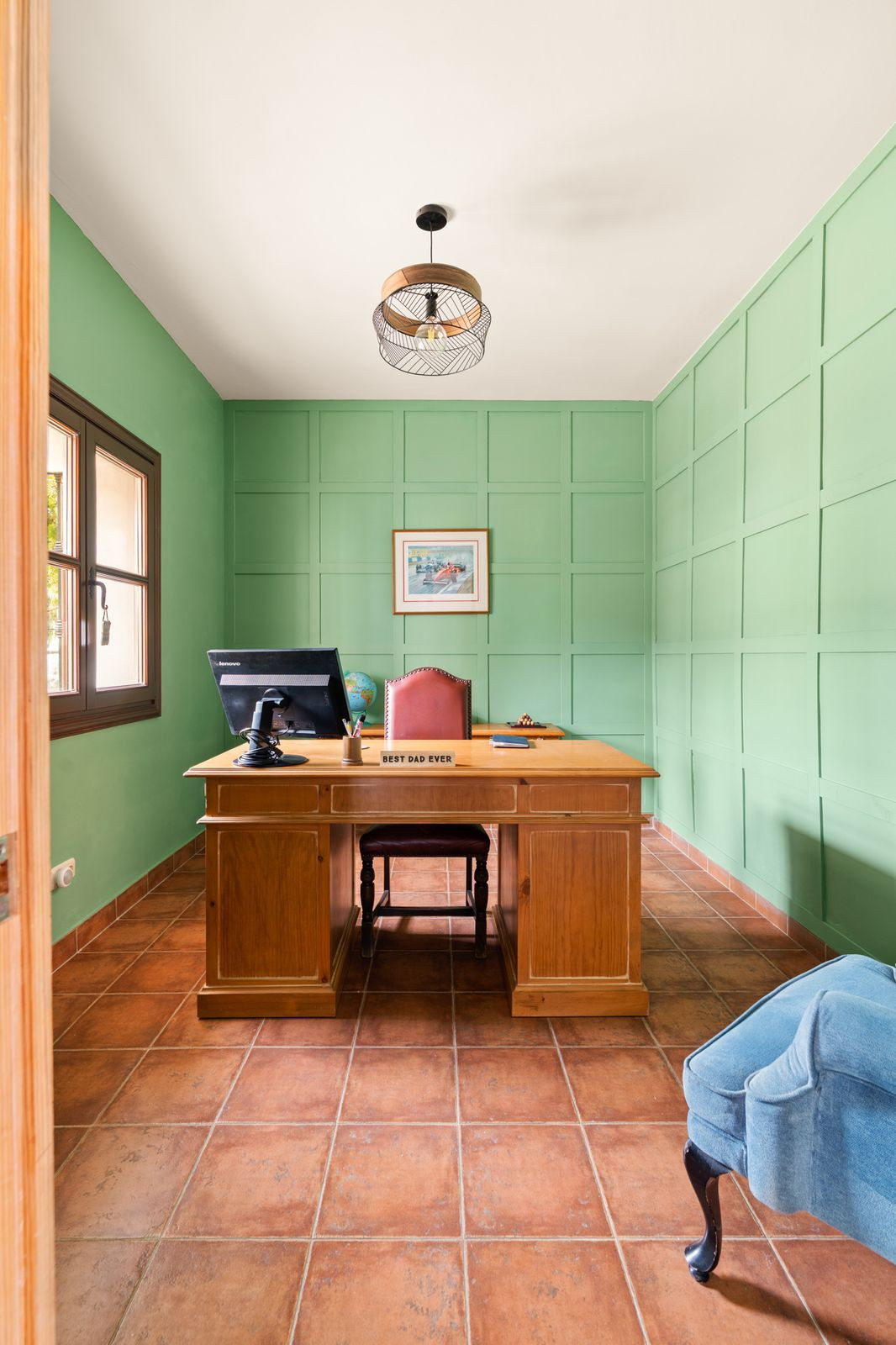 The first floor hosts three very large bedrooms, each with its own en-suite bathroom and private terrace overlooking the sea and golf course. A distinctive tower room with wraparound views provides a unique space for a yoga studio, office or private retreat.