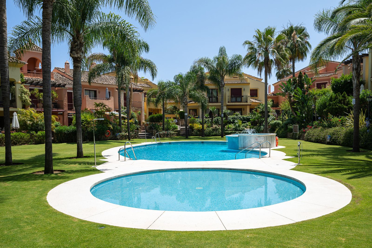 EXCLUSIVE! Discover this wonderful semi-detached house located in an exclusive private Andalusian-style urbanization, right in the heart of the coveted Golden Mile of Marbella. A true gem that blends traditional charm with modern touches, thanks to a carefully executed partial renovation.