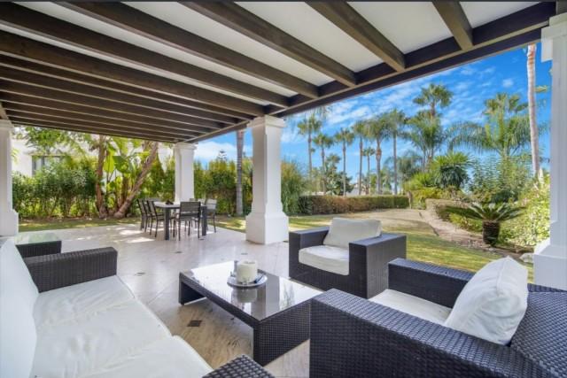 This elegant, south-facing, five-bedroom luxury villa is located in the prestigious Village Las Lomas de Magna Marbella complex on Marbella's Golden Mile. The complex offers 24-hour security, two large communal swimming pools, and lush tropical gardens of exceptional beauty. The villa enjoys a privileged location, close to all amenities, including supermarkets, shops, restaurants, schools, and golf courses, and is just a five-minute drive from the sea.