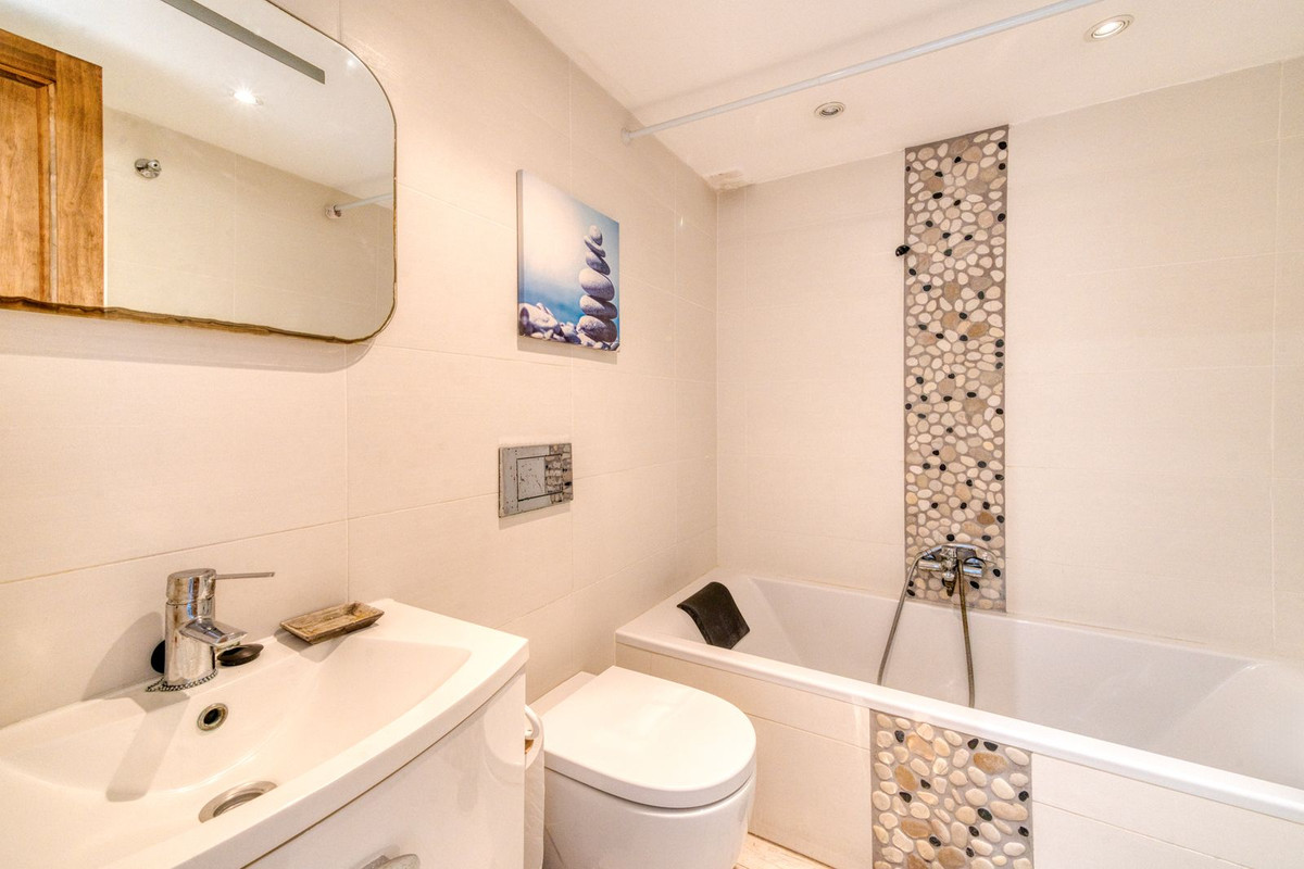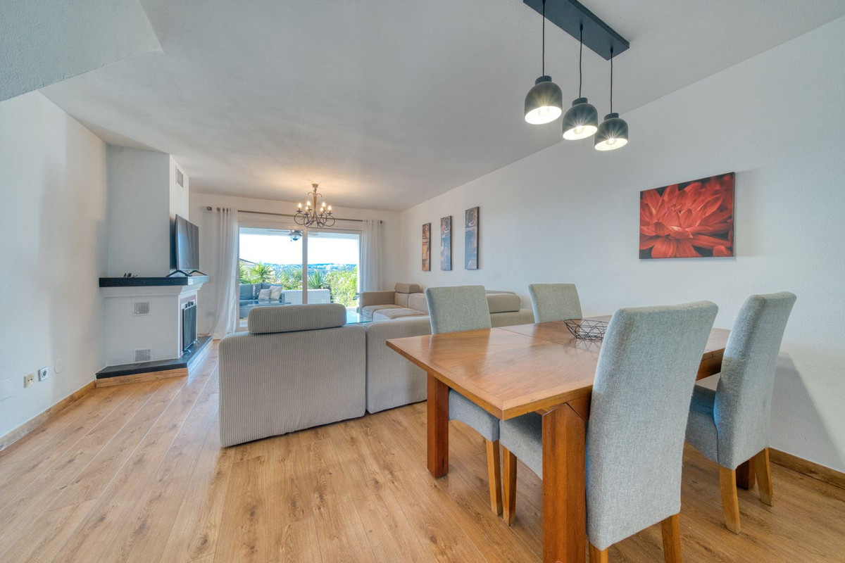 Immaculately presented and enjoying a privileged southwest orientation, this elegant two-bedroom townhouse offers stunning views across La Duquesa Golf Course to the Mediterranean Sea. Set within a peaceful and sought-after community close to the Marina and surrounding golf course, the property combines comfort, space, and convenience, yet just a 15-minute walk from the beach and the vibrant marina of Puerto de la Duquesa with its bars and restaurants. The ground floor features a large fully fitted kitchen and breakfast room with adjoining utility and guest WC. A spacious lounge and dining area opens onto a generous covered terrace, perfect for alfresco dining while enjoying panoramic views. Steps lead down to a private garden, designed for year-round sun and relaxation. Upstairs, there are two double bedrooms with fitted wardrobes and two modern bathrooms, including a master en-suite with stunning views - the master suite has a terrace which has been made part of the bedroom, but could very easily be converted back into a terrace. Additional benefits include private off-road parking, ample storage space with a downstairs cupboard and loft storage (which could also be converted into a 3rd bedroom), and access to beautifully maintained communal gardens with two pools, including a children’s pool.