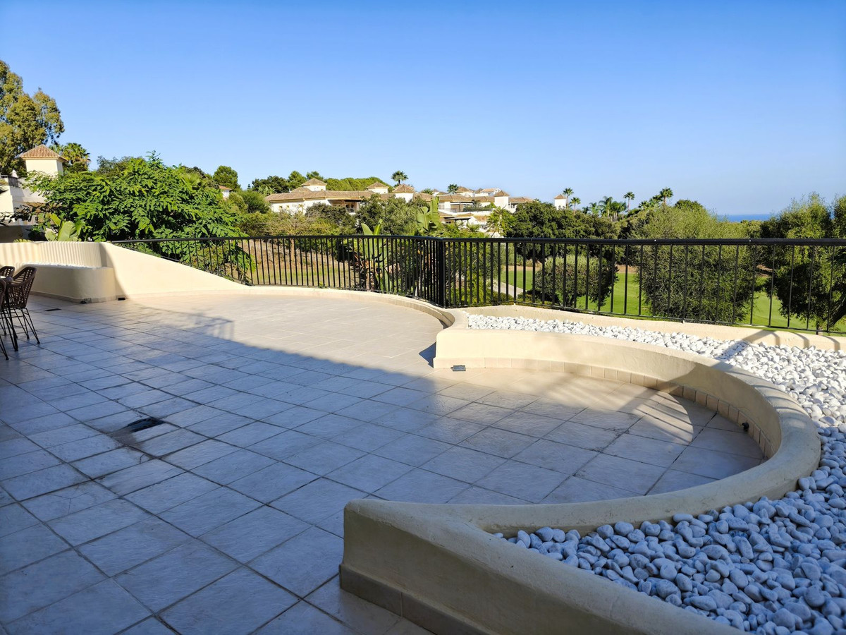 This excellent three-bedroom first floor apartment is located in the prestigious San Roque Club and combines comfort, style, and an unbeatable location. The property features a spacious living and dining room, a large fully equipped kitchen, two bathrooms, a guest toilet, and a spectacular 77 m² terrace with brand-new motorized awnings, offering stunning views of the golf course, the sea, and the surrounding countryside. The master bedroom includes an en-suite bathroom and direct access to the main terrace, while the two additional bedrooms open onto a second terrace.