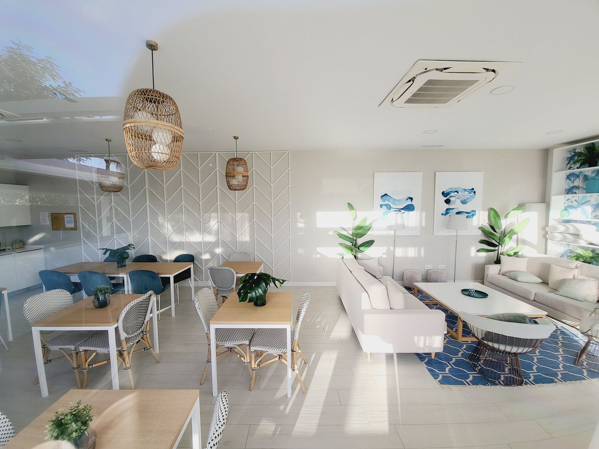 THE COMMUNAL FACILITIES AT CALA SERENA ARE SECOND TO NONE WITH AN INDOOR SPA, WELL EQUIPPED GYMNASIUM, SOCIAL LOUNGE WITH DINING TABLES AS WELL AS COMFORTABLE SEATING AND AN EQUIPPED KITCHEN WHICH IS AVAILABLE FOR USE BY OWNERS AND GUESTS. THE NEAR OLYMPIC LENGTH POOL HAS A LARGE JACUZZI POOL ALONGSIDE AND THERE IS ALSO OUTSIDE SEATING AND BAR AREA.
