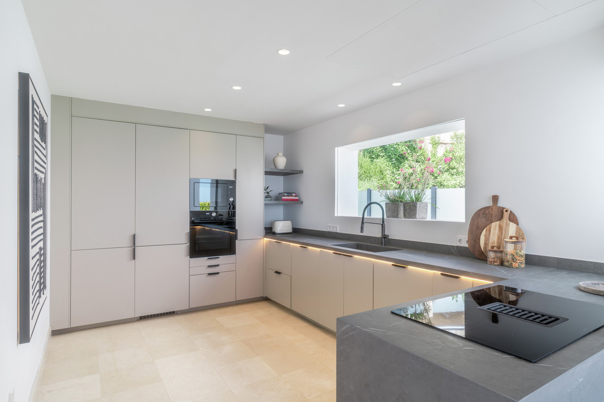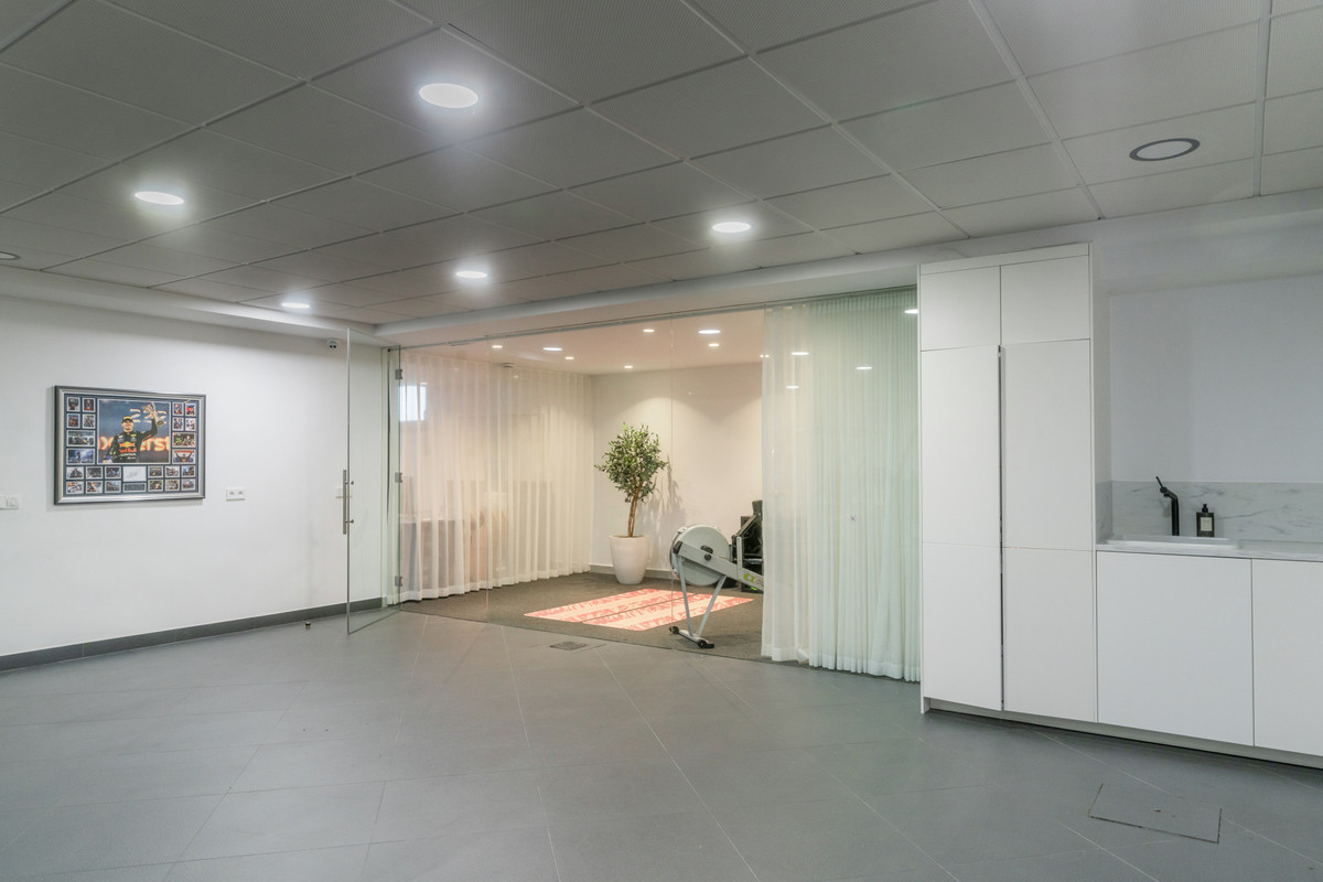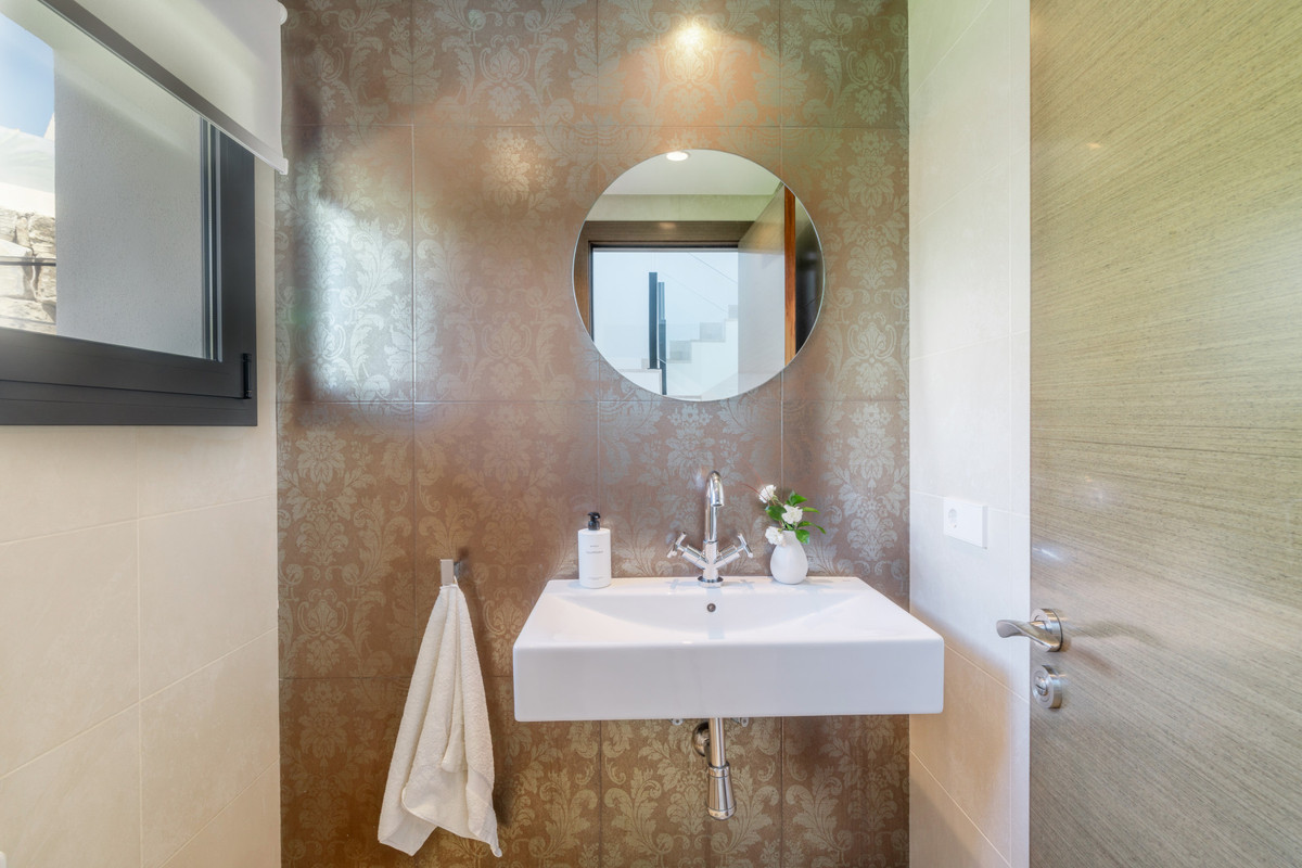 The villa offers 5 bedrooms, with all bedrooms except the basement bedroom featuring en-suite bathrooms, plus a guest toilet. Spanning 448 m² of interior space on a 595 m² plot, the property combines contemporary architecture with practical living spaces. This villa is one of the largest in the urbanization and offers the best views.