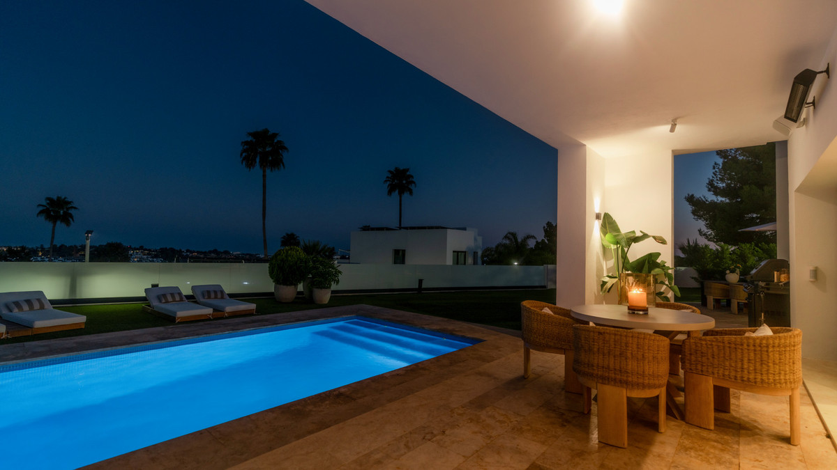 This corner villa in the gated communities of Atalaya Fairways and La Alquería offers a blend of modern design, functionality, and privacy. Located right by the security gate, Atalaya Fairways features a guard and cameras throughout the community, providing peace of mind. La Alquería adds an extra layer of security with regular patrols, making this one of the safest homes in the region. Its corner position further enhances privacy, making it ideal for family living or as a holiday retreat.
