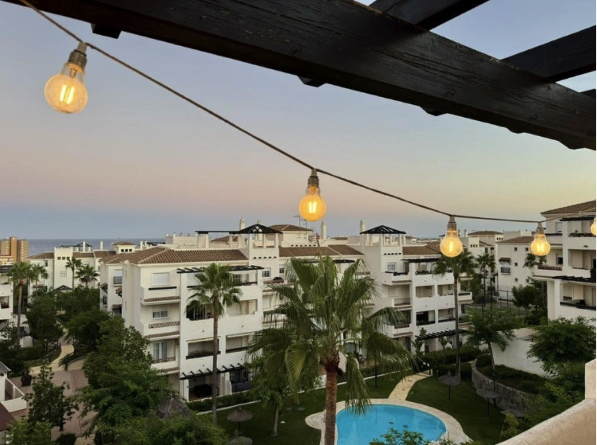 Elevate your lifestyle in this sophisticated top-floor penthouse apartment within the prestigious Residencial Duquesa Phase 1, a gated urbanisation in the charming coastal enclave of La Duquesa, Manilva. Offering 2 bedrooms and 2 bathrooms, this fully furnished property blends Mediterranean elegance with modern convenience, making it an ideal retreat for year-round living, holidays, or investment. Perched at a higher level than surrounding buildings for ultimate privacy, the east-facing orientation ensures breathtaking sunrises directly over the sea, with abundant morning sun on the terrace until around 15:30 in summer, transitioning to delightful afternoon shade – perfect after a day at the beach.