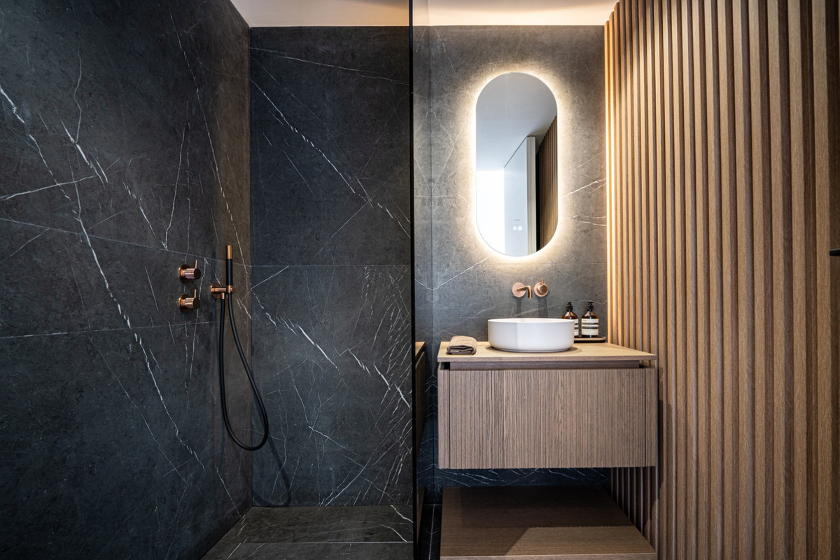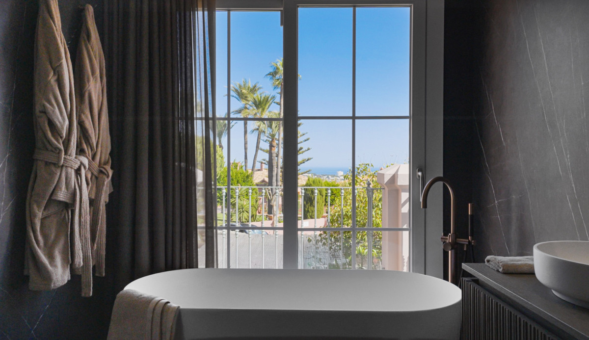 Townhouse The Nest is a fully renovated 3-bedroom, 3-bathroom home located in Nido de Los Halcones, Benahavis. Each bedroom has an en-suite bathroom with modern walk-in showers and underfloor heating. The property also includes a guest toilet, private carport, and access to a communal pool and garden. Positioned frontline golf, it offers beautiful views of the mountains and golf course.