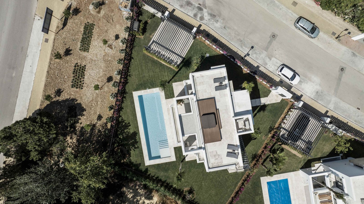 Stunning modern and elegant villa, located in one of the most prestigious areas of the New Golden Mile, between Marbella and Estepona. Just 1 km from the beach and a 10-minute drive from Puerto Banús, this property perfectly combines luxury, comfort, and an unbeatable location.
