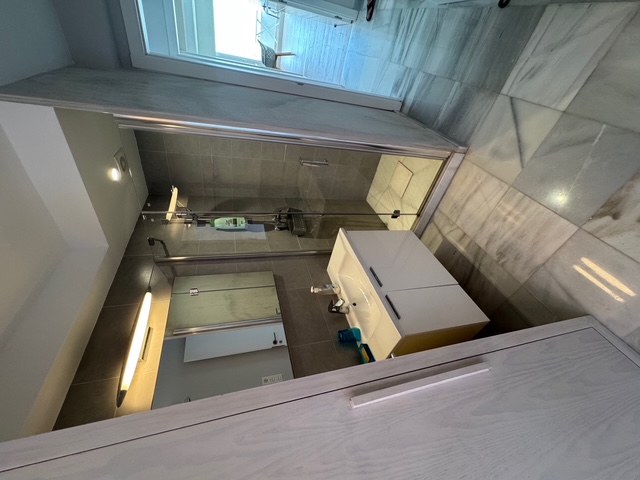 The top floor hosts an independent studio apartment, ideal for guests, complete with its own living area, kitchen, bedroom, and bathroom.