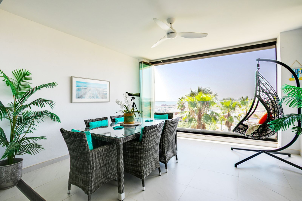 As you enter, you are welcomed into a beautifully designed living area with a semi-open, fully fitted kitchen. The space flows seamlessly onto a large covered terrace, enclosed with glass curtains, allowing you to enjoy outdoor living all year round. From here, you can soak in panoramic views of the Mediterranean Sea, the lush communal gardens, the pools, and the majestic mountains of Estepona. This beautiful property is an end unit and is not overlooked by other owners, in a block of only 5 units.