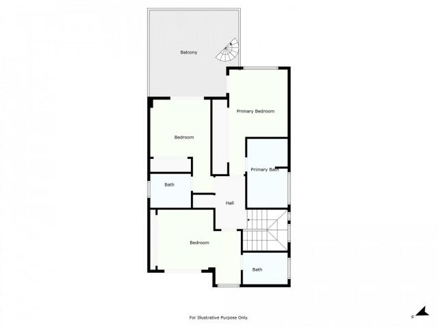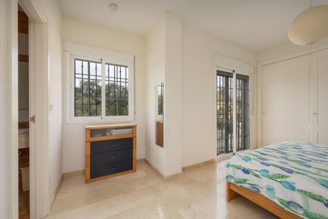 The first floor boasts with 3 more spacious and bright bedrooms, all with en-suite bathrooms and large wardrobes. One room has a balcony overlooking the garden and pool and also shares a terrace with the other bedroom. The third bedroom has views to a lovely green private park area facing West.