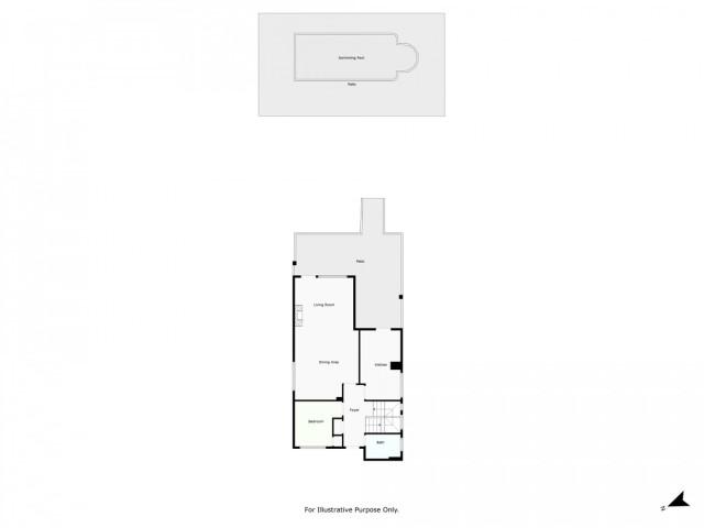 The villa is distributed over three levels. On the main floor we find a large entry hall, a very spacious dining area and living room with fireplace/chimney, leading on to the terrace. Next to it, a fully fitted kitchen that can be opened up if wanted. We also find one bedroom/office/gym and a good size bathroom with shower on the main floor. The interior areas are connected to the covered terrace that give direct acces to the garden and the private swimming pool.