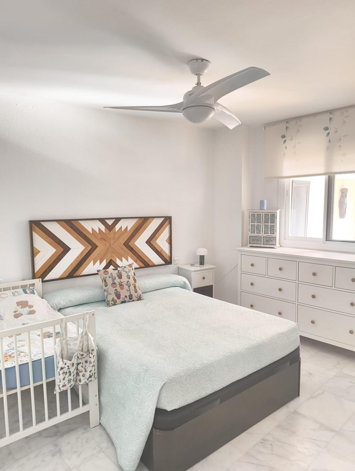 The apartment consists of three spacious bedrooms, perfect for accommodating a family or guests, as well as two functional bathrooms, one of which is en-suite to the master bedroom. The main living area allows for a combined living and dining space with direct access to a 30 m² terrace, providing a pleasant outdoor extension where you can enjoy the mild Costa del Sol climate.