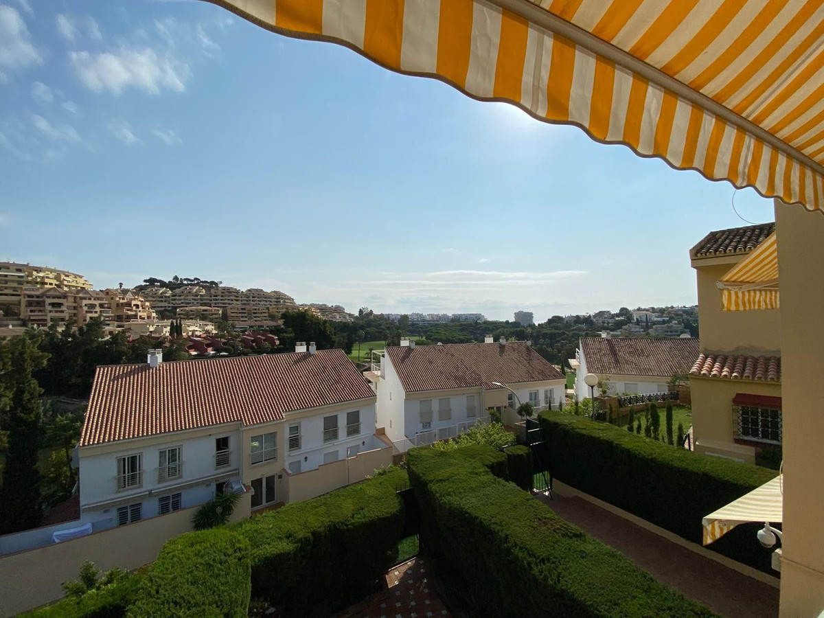 Fantastic semi-detached house in TORREQUEBRADA, in the best area of ​​Benalmádena, in a residential development. Before entering the house, there is a small and charming garden where you can sunbathe in the afternoons. Upon entering, you enter the spacious living room with a marble fireplace that adds style and warmth, perfect for enjoying moments of relaxation. It is connected to the fully equipped kitchen by a serving hatch and a laundry area with a window. There is also a toilet on this same main floor. This home is bright as it faces east and west (morning and afternoon sun). Air conditioning and a heat pump are provided. The living room has access to a covered terrace and connects to another terrace that leads down via a staircase, where you can relax, sunbathe, and enjoy barbecues with family and friends. On the upper floor, you will find two exterior bedrooms. The master bedroom is very spacious, with a full en-suite bathroom, built-in wardrobes, and also has a terrace with beautiful panoramic views. The second bedroom is also spacious and has an en-suite bathroom. The community grounds, closed by an automated gate, offer parking for several cars. The development offers a large communal pool (semi-Olympic size, open all year round), lawns, and tropical gardens. The gardener cares for the private and communal gardens, which are included along with water usage, in the monthly community fee. The development is located in a quiet, well-connected residential area. Ideal for golf lovers, as it is very close to one of the best golf courses on the Costa del Sol (TORREQUEBRADA GOLF). Torrequebrada is home to several schools and hospitals, and is just 2 km from the beaches and several supermarkets in the area. VISITS RECOMMENDED!
