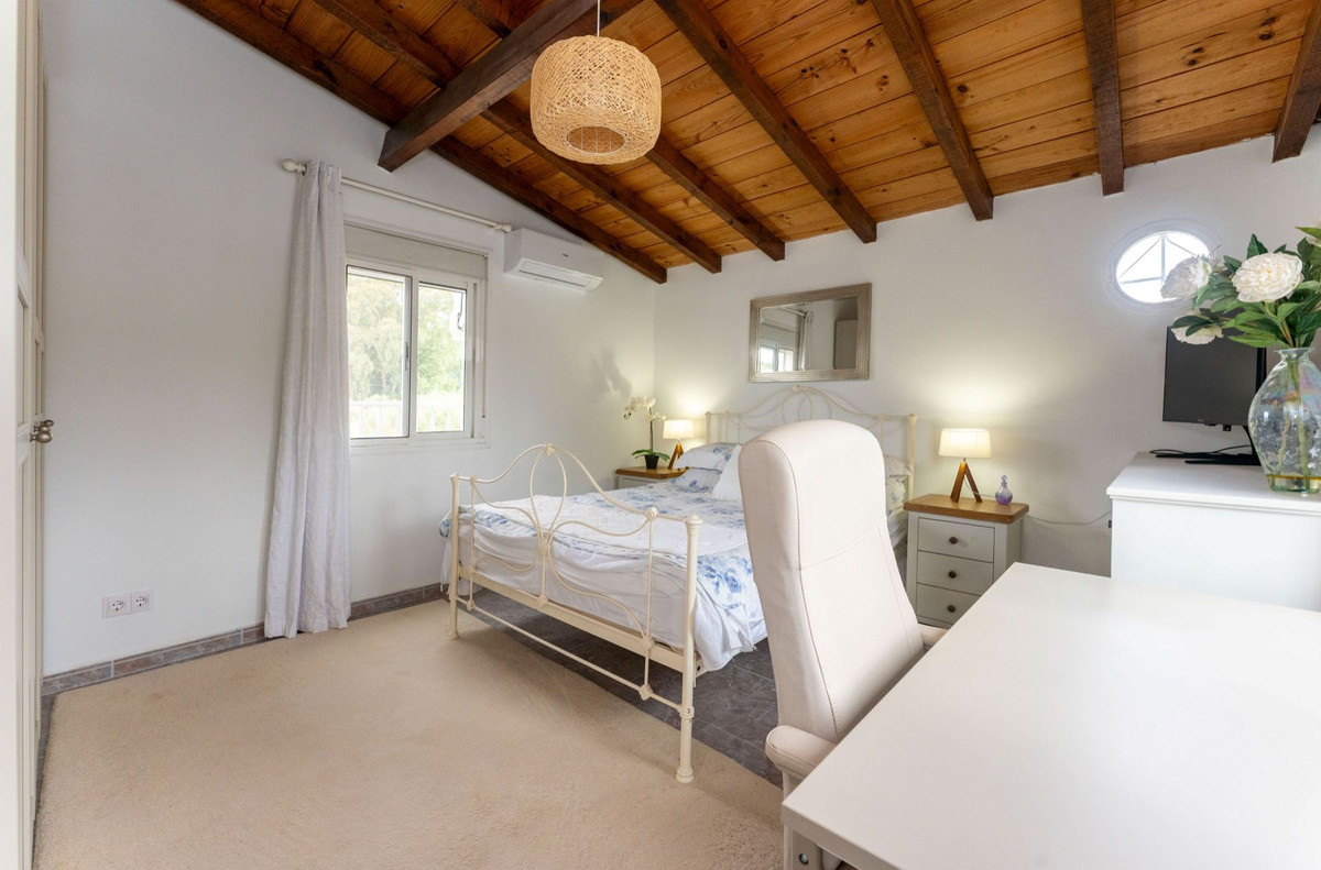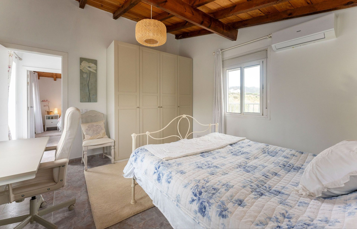 The first floor, accessed via an external staircase, comprises two further double bedrooms and a second bathroom, both boasting from stunning wooden ceilings. This layout is ideal for grown-up children, extended family, or even guest accommodation, offering flexibility and independence.