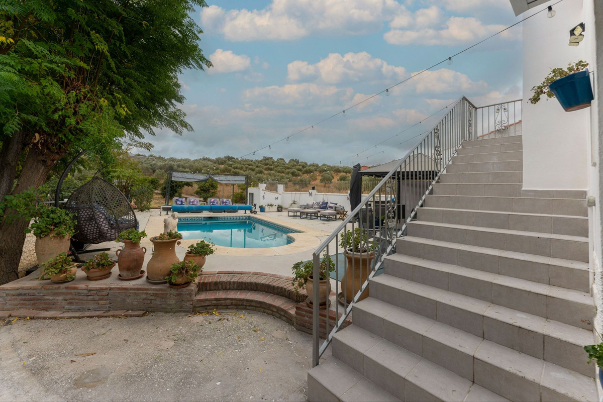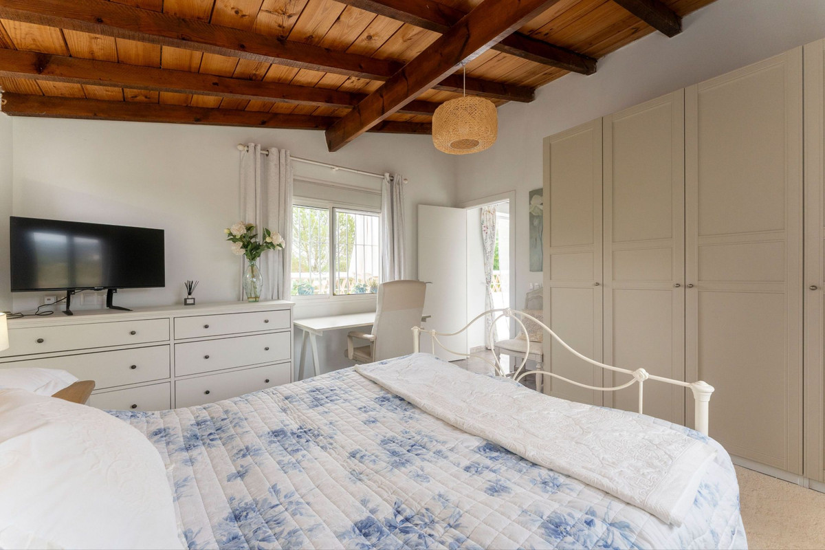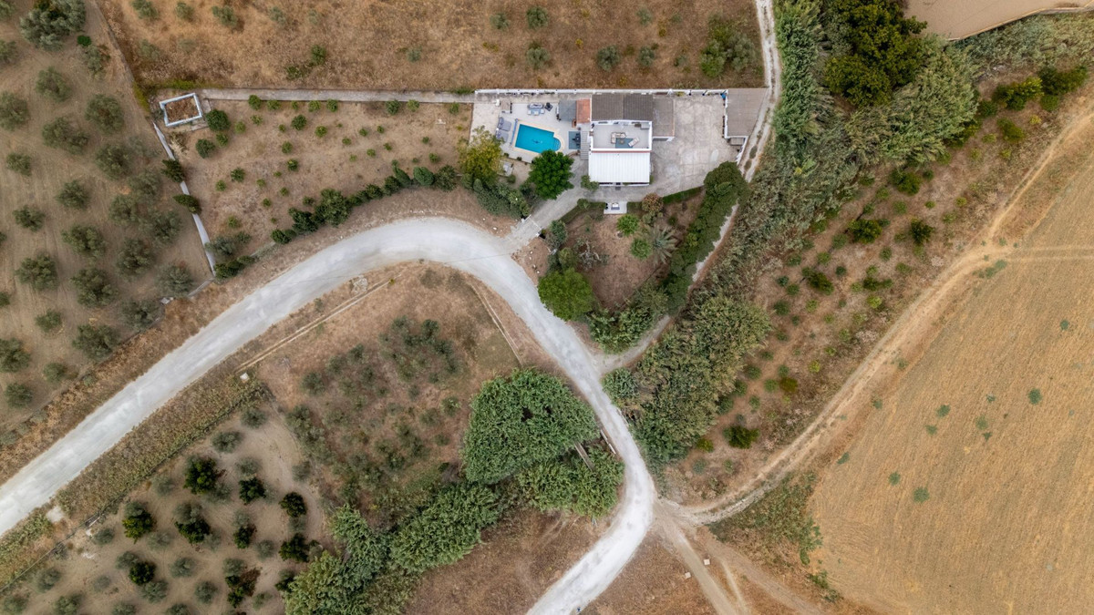 The property sits on a flat plot of just over 4,400m², part of which surrounds the house, while an additional smaller plot is situated across the lane. This separate area is planted with approximately 40 olive trees and 40 orange trees, providing an authentic Andalusian touch. The main plot is fully fenced, ensuring privacy and security.