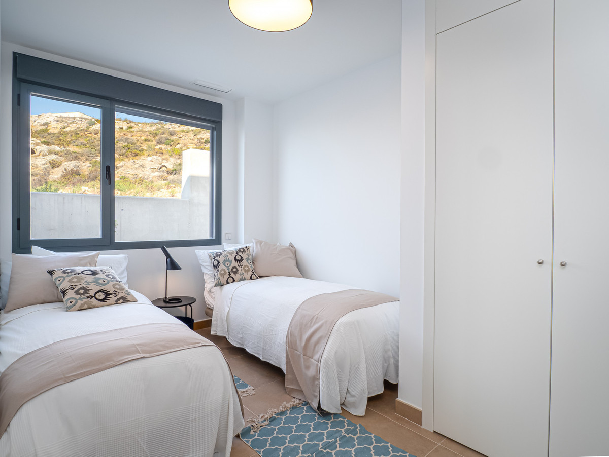 Built in 2018 and presented in immaculate condition, the home has been thoughtfully enhanced with premium finishes. The open-plan living area features a bespoke wooden TV wall, while the modern kitchen boasts a high-quality stone countertop and integrated appliances. Upstairs, wooden flooring adds warmth and elegance. The master bedroom enjoys floor-to-ceiling windows with breathtaking sea views, and the ensuite bathroom has been upgraded with stylish finishes, underfloor heating, and an enlarged window framing the same stunning outlook.