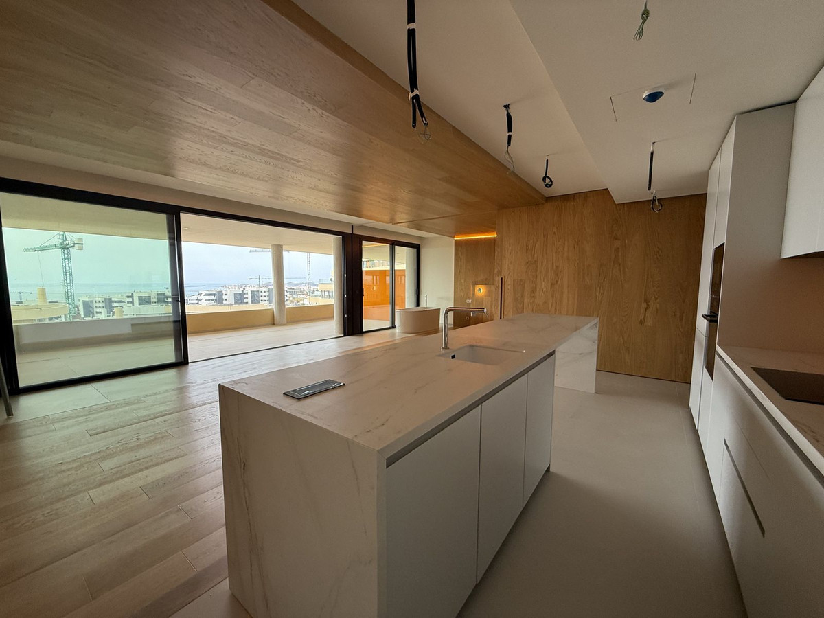 Be among the very first to reserve this stunning brand-new, just-completed 3-bed, 2-bath apartment. Spread across 140 m² built, the open-plan living and kitchen area is bright and spacious, with floor-to-ceiling sliding glass doors that seamlessly extend your living space onto the elegant terrace. From here — and from the living room itself — you’ll enjoy beautiful views of the community pool and partial sea views, creating a serene, sunlit atmosphere throughout the day. Included are 2 corner-space parking bays, a private storage unit, and a pre-installed EV car charger — everything you need to move in with ease.