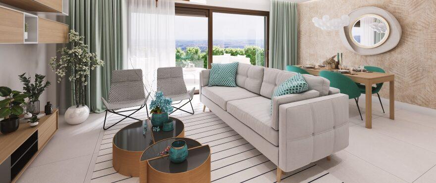 The project includes 4 blocks of 3 floors with homes in contemporary "open plan" style but with a rustic appearance that blends into the natural surroundings. Apartments with 2 and 3 bedrooms and penthouses with a solarium, with large terraces, communal pool and gardens with autochthonous plants.