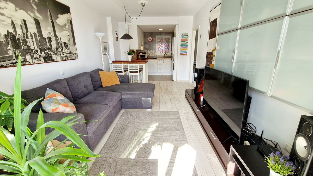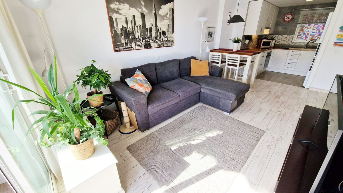 Beautifully renovated one-bedroom apartment for sale in lower Los Pacos, within walking distance to shops, restaurants, and public transport. This bright and sunny home features a spacious terrace with glass curtains and lovely sea views — perfect for year-round enjoyment.