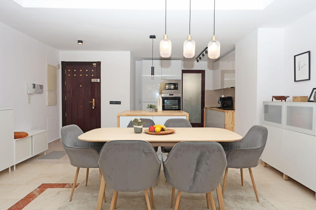 This beautifully modernized ground-floor apartment in La Mairena, Marbella, offers 2 bedrooms, 2 bathrooms, and 138 m² of bright living space in a peaceful gated community surrounded by nature. The open-plan layout includes a designer kitchen, dining area, and glass-enclosed terrace – perfect as a second living room or home office. The private garden provides direct access to landscaped communal areas and enjoys stunning sea and mountain views with a sunny south–southwest orientation.