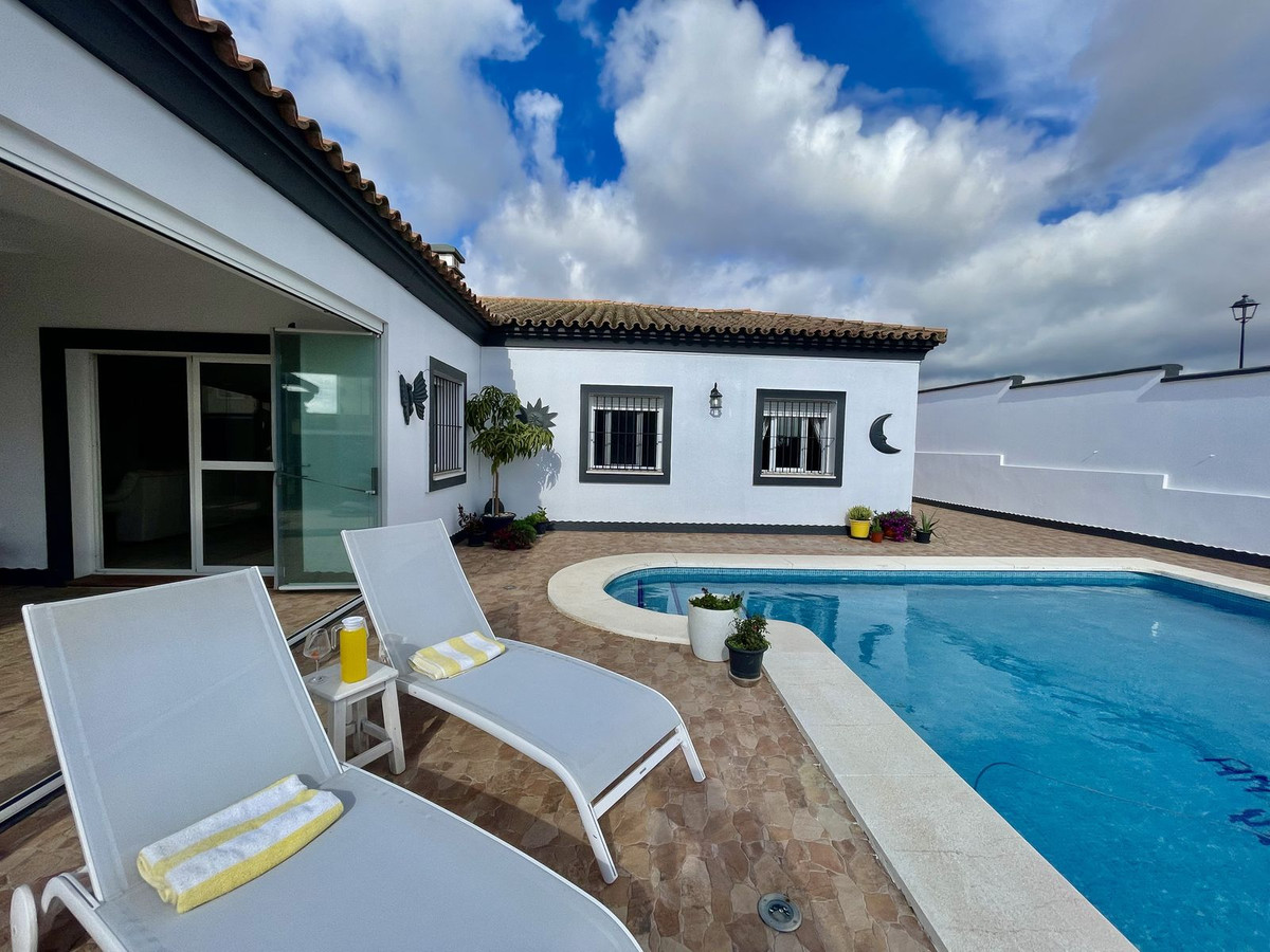 This charming single-level, 4 bedroom, 3 bathroom villa in Los Barrios offers comfort, privacy, and modern finishes in a peaceful residential setting. Set on a 495 m² corner plot with 229 m² built, the home enjoys open views over green land, Gibraltar, and excellent privacy.