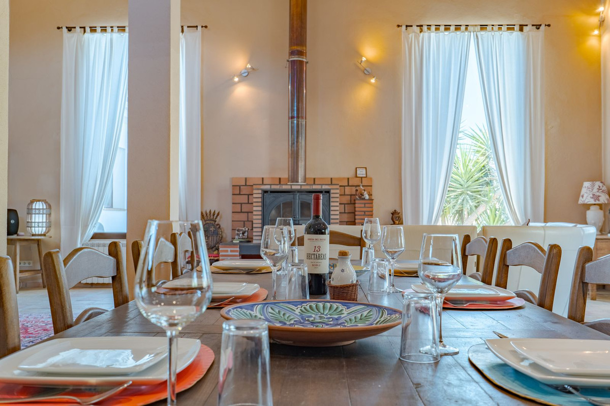 High ceilings and large windows: These architectural features provide maximum natural light throughout the day and accentuate the feeling of space. Enjoy the warmth of the fireplace on cooler evenings, surrounded by charming terracotta floors and the beautiful Spanish wooden front door that emphasises the rural atmosphere.