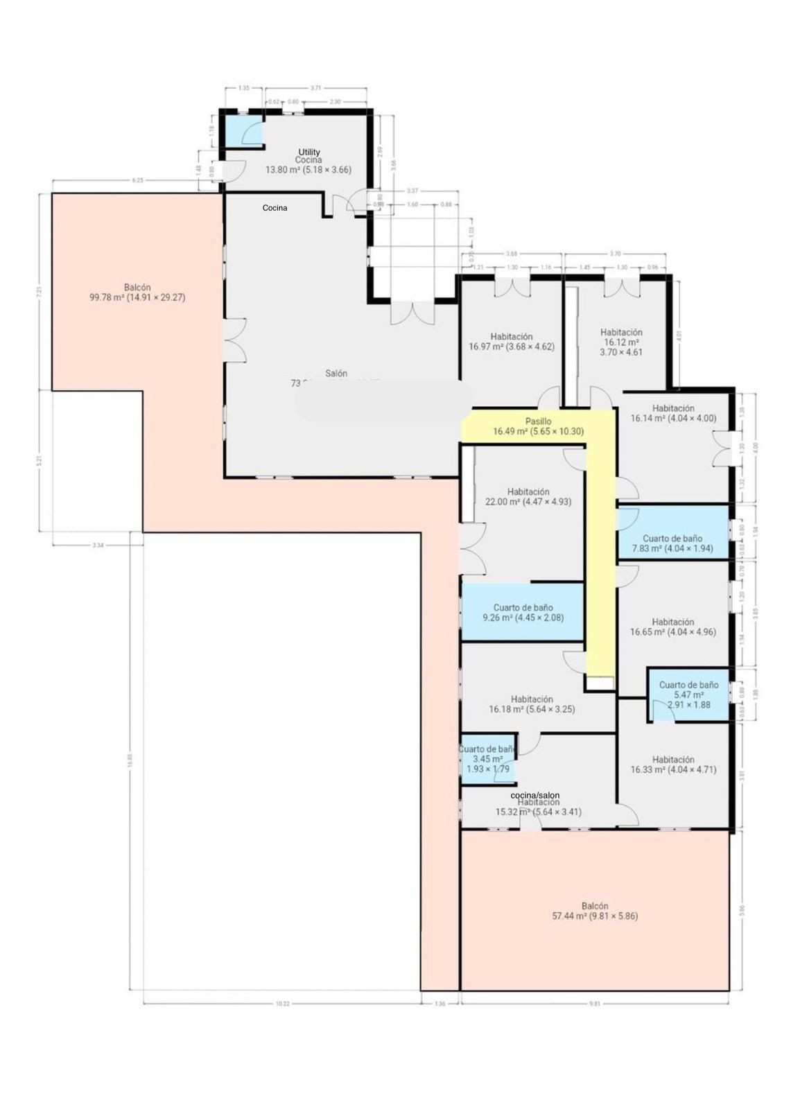 A small step leads to a hallway that leads to the main sleeping area. These rooms are spacious and equipped with practical built-in wardrobes, providing optimal storage space.