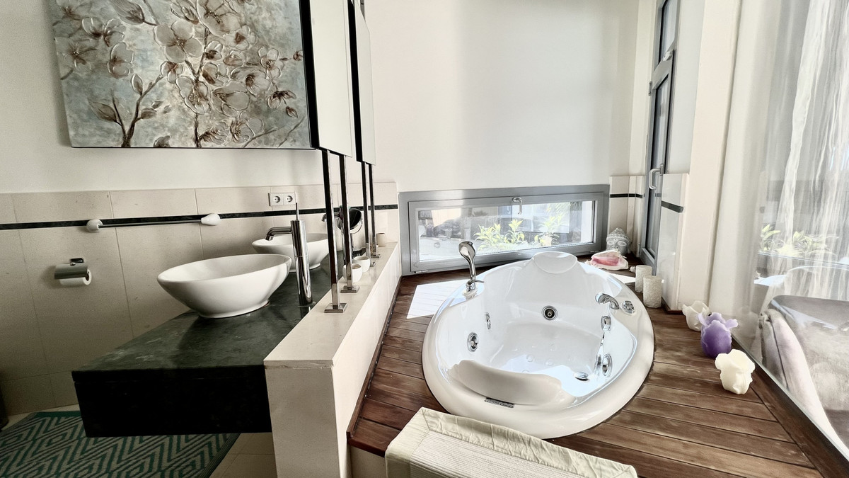 Ideally located near amenities, schools, the town centre, and the beach, this villa also offers proximity to bars and children’s playgrounds. Additional features include air conditioning, a gym, storage room, and a guest toilet, ensuring every aspect of modern living is catered for in this exclusive Marbella residence.