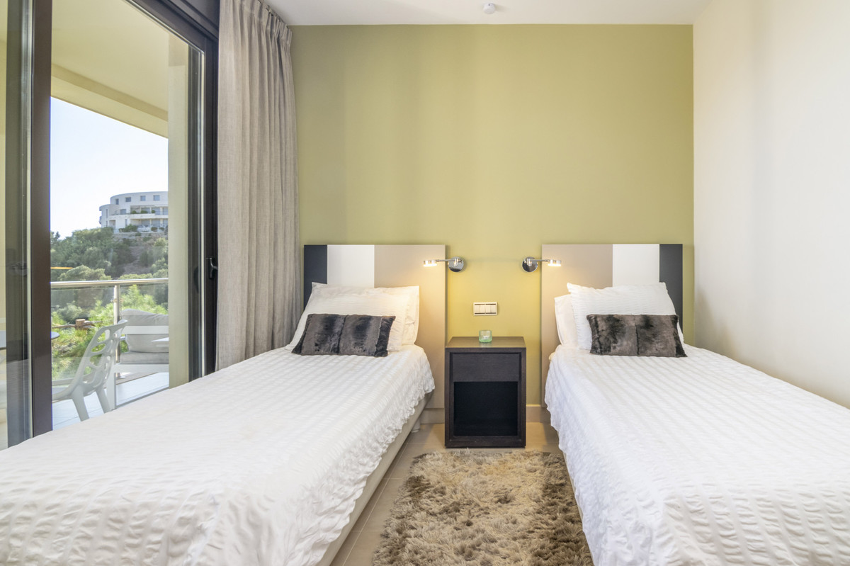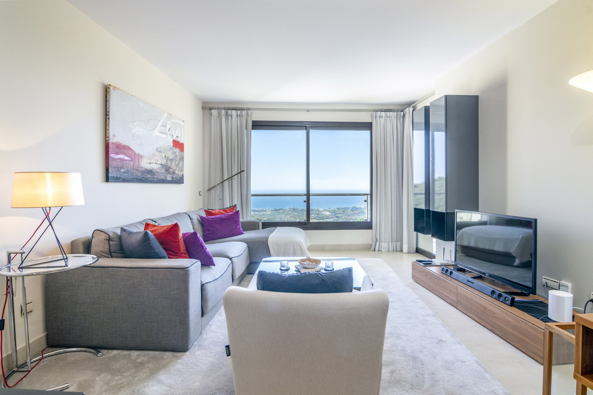 Stylish and modern, this two bedroom apartment in the exclusive Samara Resort in Marbella offers stunning panoramic views of the Mediterranean Sea. Located on the first floor with easy access through the resort’s beautifully landscaped gardens, the apartment features a bright and open layout that seamlessly connects the fully equipped kitchen, dining area, and living room, perfect for relaxed coastal living. Both bedrooms open onto a spacious terrace overlooking the pool and sea, while the master suite includes an elegant en-suite bathroom, dressing area, and ample built-in wardrobes. A second bathroom with a sleek, minimalist design, along with a laundry room and storage space, add everyday convenience. Set within a luxury gated community with 24-hour security, residents can enjoy outstanding amenities including a spa, sauna, jacuzzi, massage room, indoor heated pool, gym, and two outdoor pools, one an impressive infinity pool with breathtaking sea views.