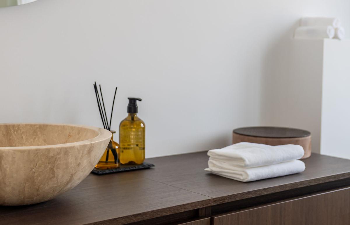Upstairs, you will find two cosy bedrooms, each with their own bathroom, and a terrace offering pleasant, open views towars the Mediterranean.