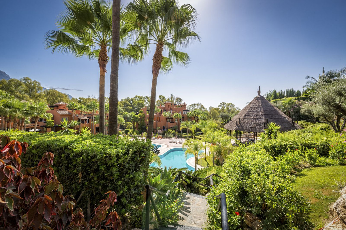 Set in one of Nueva Andalucia’s green communities with tropical gardens, a lake, and two pools, this southeast-facing ground-floor apartment is made for easy indoor-outdoor living.