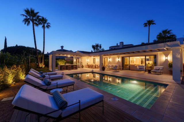 A beautifully reimagined single-level villa nestled in the heart of Nueva Andalucía, just minutes from the renowned Los Naranjos Golf Course. This exquisite 4-bedroom home merges Mediterranean elegance with contemporary comforts. Set on a lush, elevated plot, the villa offers privacy, tranquility, and breathtaking views across the valley to the sea, all while being moments away from Marbella’s best golf, dining, and beach experiences.