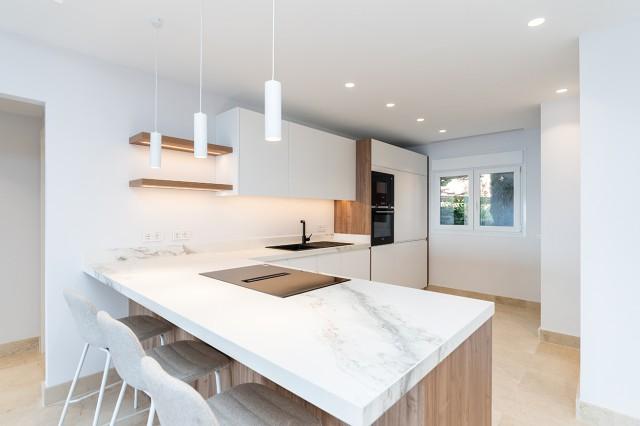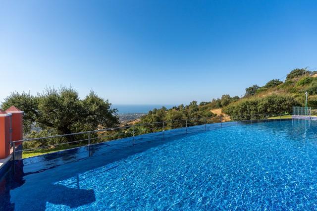 First-floor apartment in La Mairena with spectacular sea views over pine and cork oak trees, facing south. The apartment has been completely renovated to the highest specs, including windows, electrical installation, etc. It features a modern open-plan kitchen with high-quality cabinetry. Microcement bathrooms and underfloor heating. Equipped with Air conditioning hot and cold and with marble floors. It has two bedrooms, two bathrooms, one ensuite, a living and dining room, along with a modern kitchen, and a covered, glazed terrace with glass curtains. It also features a state-of-the-art electric fireplace. One parking space is included in the complex. Spectacular development nestled in nature with large green areas and an infinity pool.