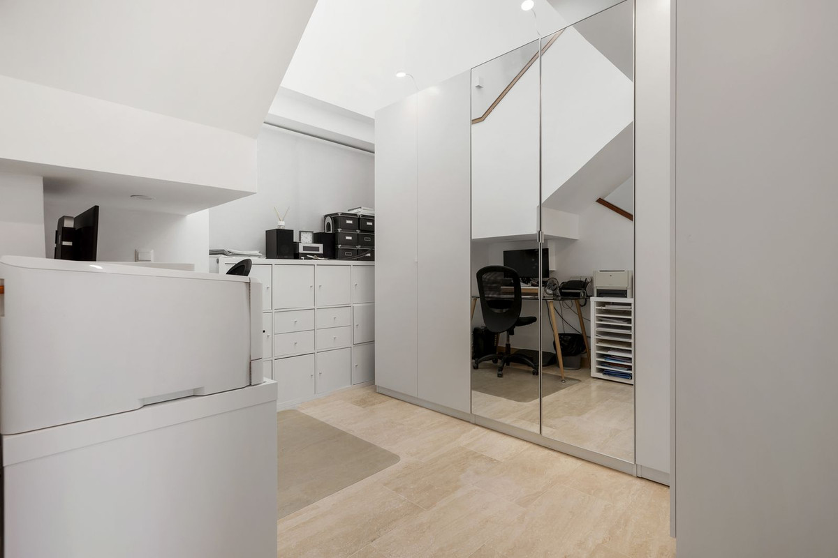 The top floor is home to a spacious rooftop terrace, also west-facing, where you can bask in the sun, entertain friends, or take in the sunsets. This floor also features a solar panel system that generates enough electricity not only to cover all consumption but also to sell excess power back to the grid, resulting in zero monthly electricity bills.