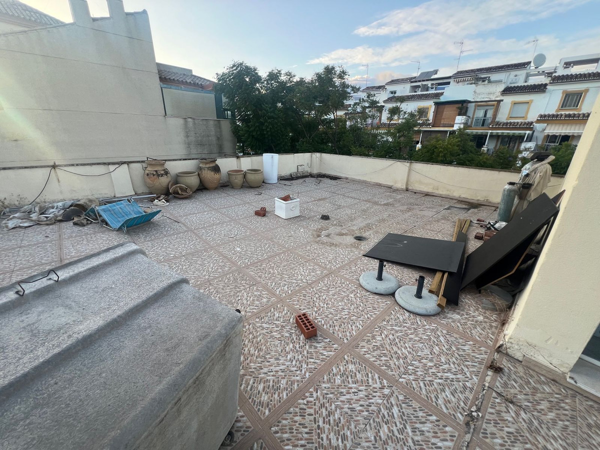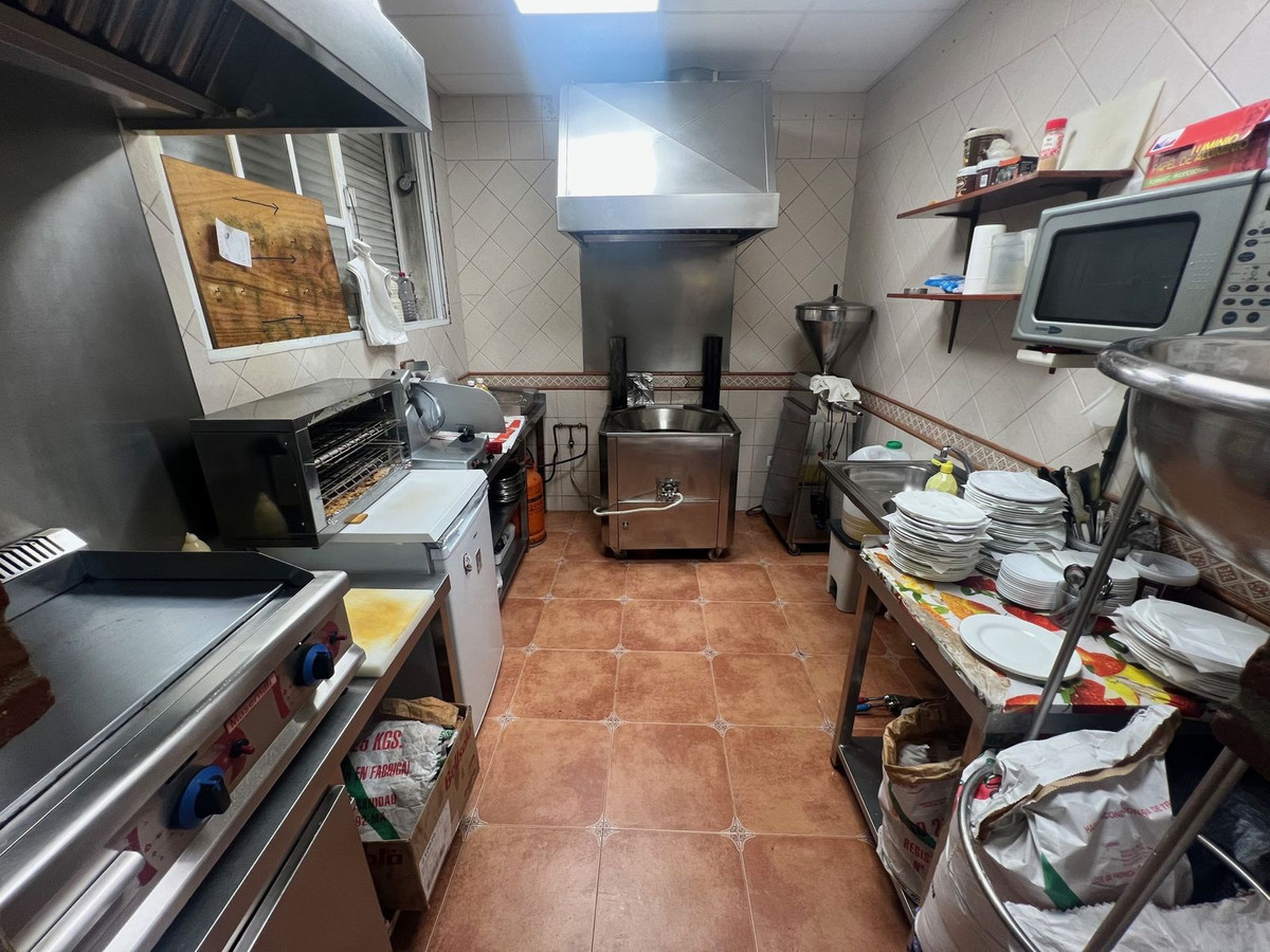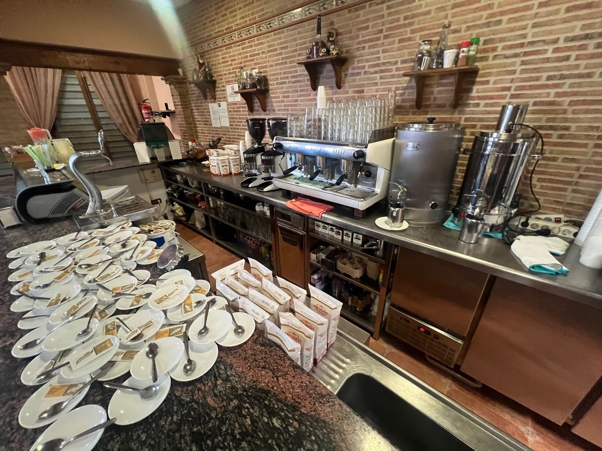 Commercial premises and residential property for sale in the Avenida Andalucita area of Estepona. The commercial premises measure 125 square metres and are currently used as a café and churros shop. The upper floor is a 210-square-metre residential property with a 200-square-metre terrace, ideal for converting into an apartment or rental accommodation. The business has been operating for over 20 years and has a loyal customer base.