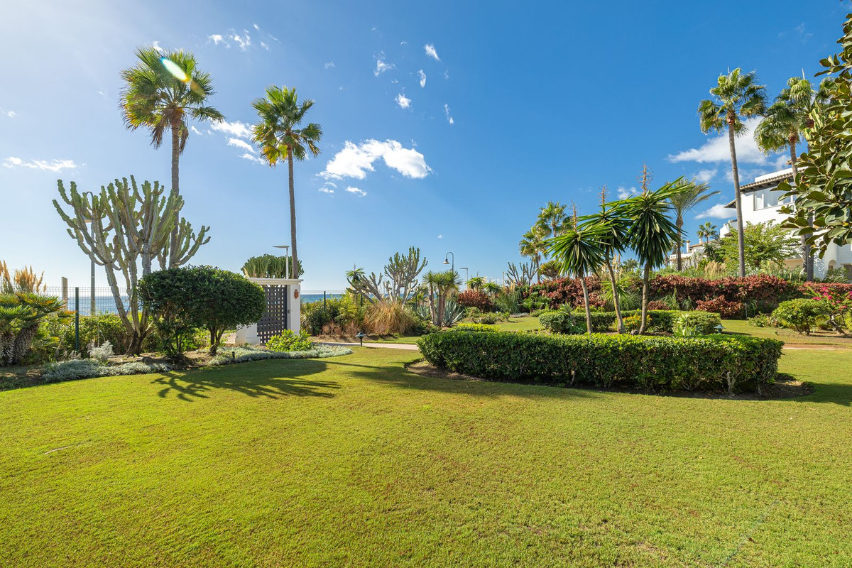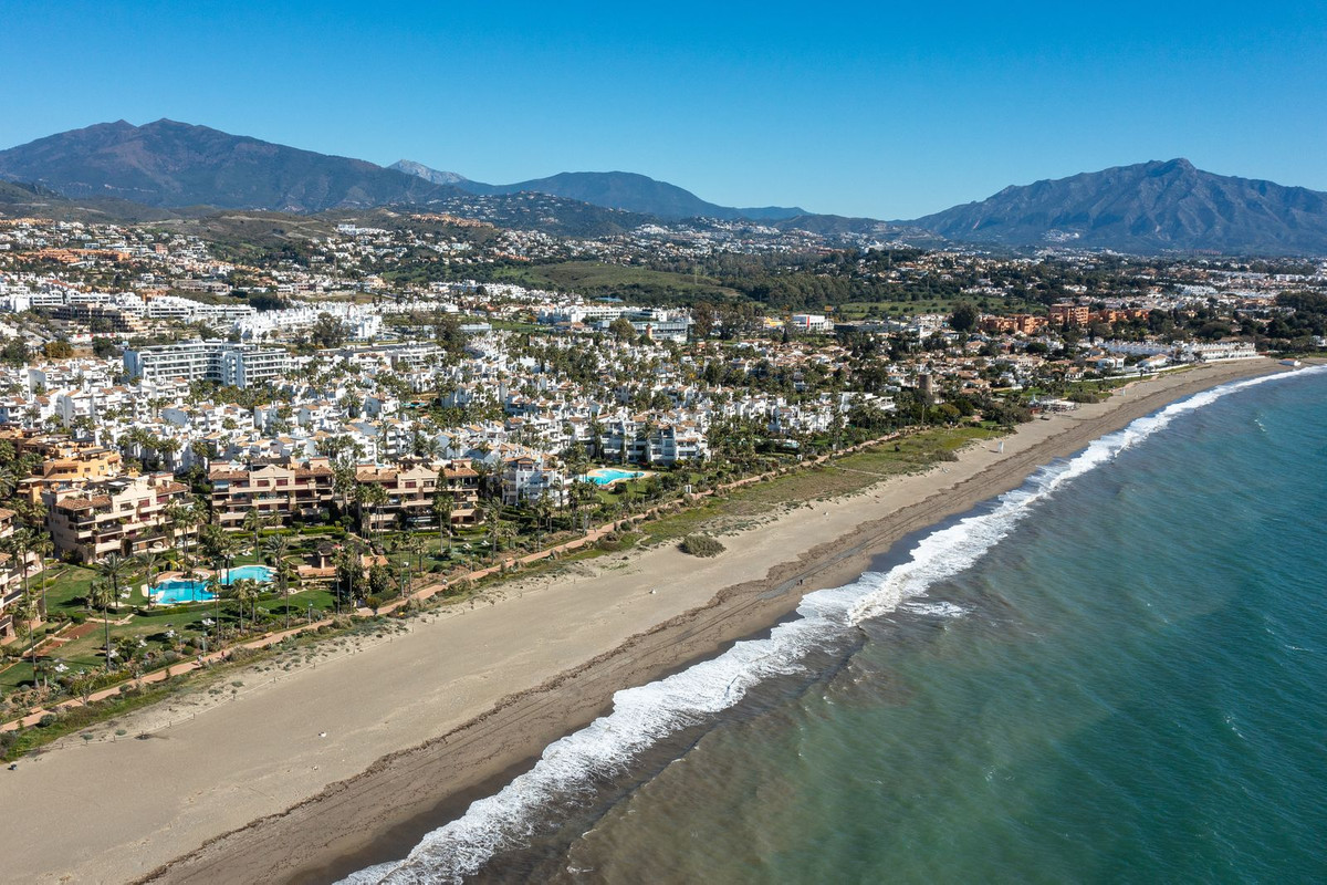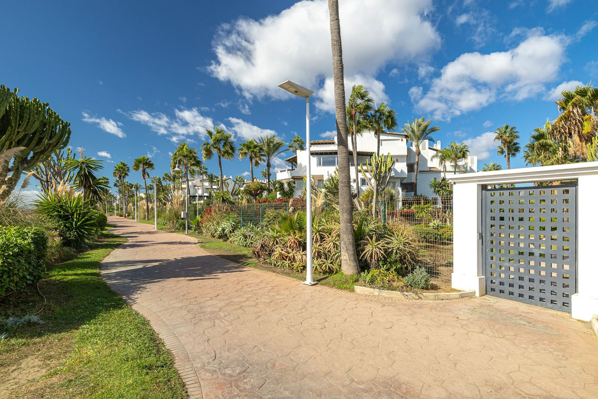 Fully Renovated Top-Floor Beachside Apartment with Direct Sea Access – Costalita, Estepona. Located in the highly sought-after area between Marbella and Estepona, this beautiful top-floor corner apartment has been recently renovated to a high standard. The corner position provides plenty of natural light and a bright, spacious feel throughout. Set within a frontline beach gated community, residents enjoy direct access to the beach through mature landscaped gardens and a lovely communal pool area. The apartment offers excellent privacy and a sunny terrace, perfect for relaxing or dining outdoors. Within walking distance, you’ll find a variety of beach restaurants and the charming village of Cancelada. Only a short drive to the centres of Estepona and San Pedro, this property is ideal as a holiday retreat or for comfortable year-round living.