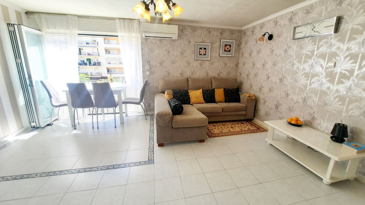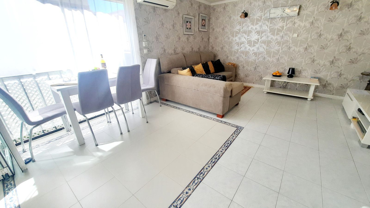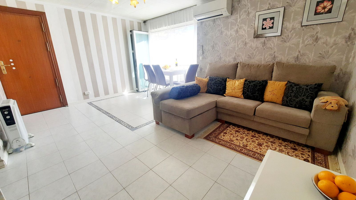 Location, location, location!!! Top floor apartment for sale in one of he main avenues in Fuengirola very sunny and bright. with a large comunal solarium with pergola, bbq, dining area and sun beds which can be used at any time by the neighbors. The property has been renovated with new wooden floors in the bedroom, new shower room, and open plan lounge dining with balcony. There is a fantastic communal solarium . SECOND FLOOR NO LIFT Has A/C and electric shutters in the lounge. Ideal for a holiday place.