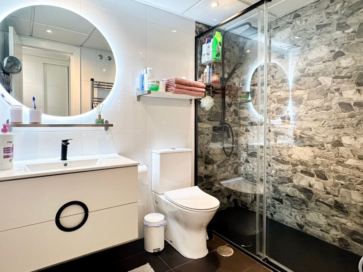 With a built area of 116 m² including garage and storage room and an efficient layout, this apartment features two spacious bedrooms and two bathrooms that offer a cozy and private atmosphere for all your moments of rest. The independent kitchen is functional and stylish. Additionally, the apartment includes a storage room that further optimizes storage.