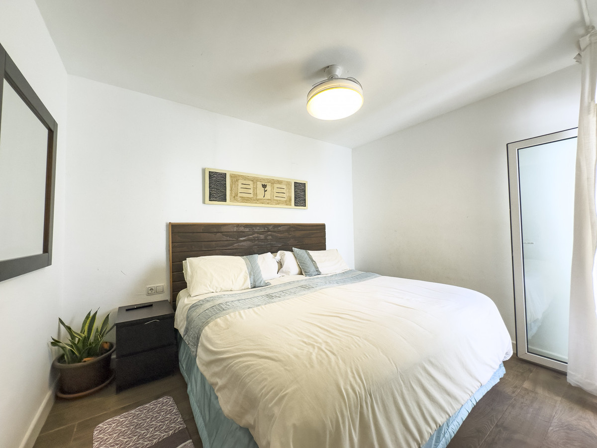 On the ground floor, you’ll find an independent, fully equipped kitchen with plenty of natural light, as well as a practical storage cupboard perfect for extra space. The bright and spacious living-dining room opens directly onto a large private patio, an ideal outdoor area to enjoy the sunshine, host barbecues with friends, or even install a small pool or chill-out zone.