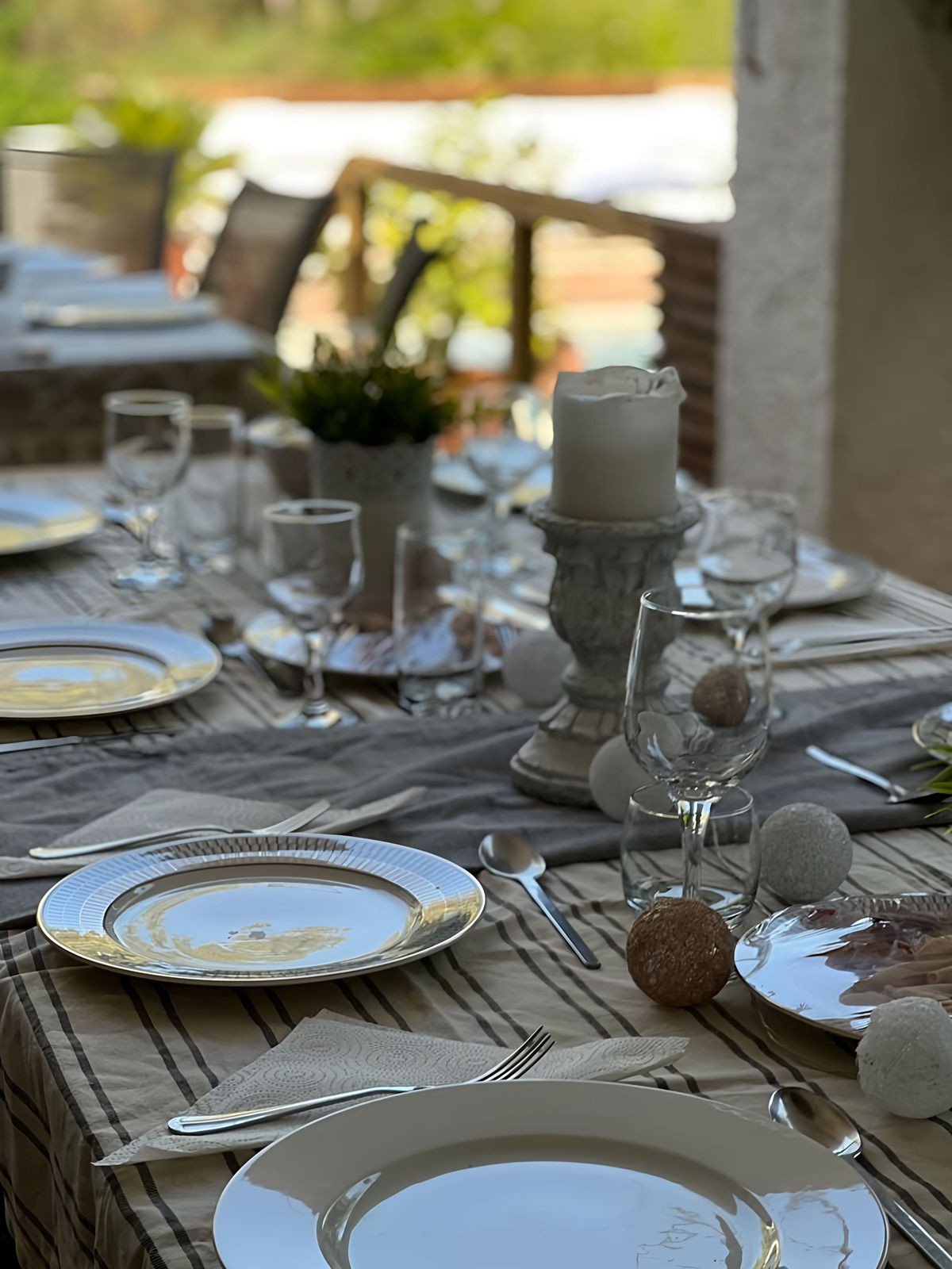 Several covered and open terraces (30 m²) provide the ideal spots for outdoor dining or relaxing while enjoying views of the beautiful garden and private pool.