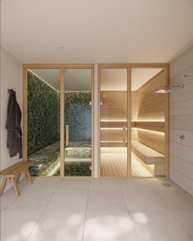 The project offers high-end communal amenities, including outdoor swimming pools, a traditional sauna & hammam, a fully equipped gym, a coworking area, and a golf simulator.