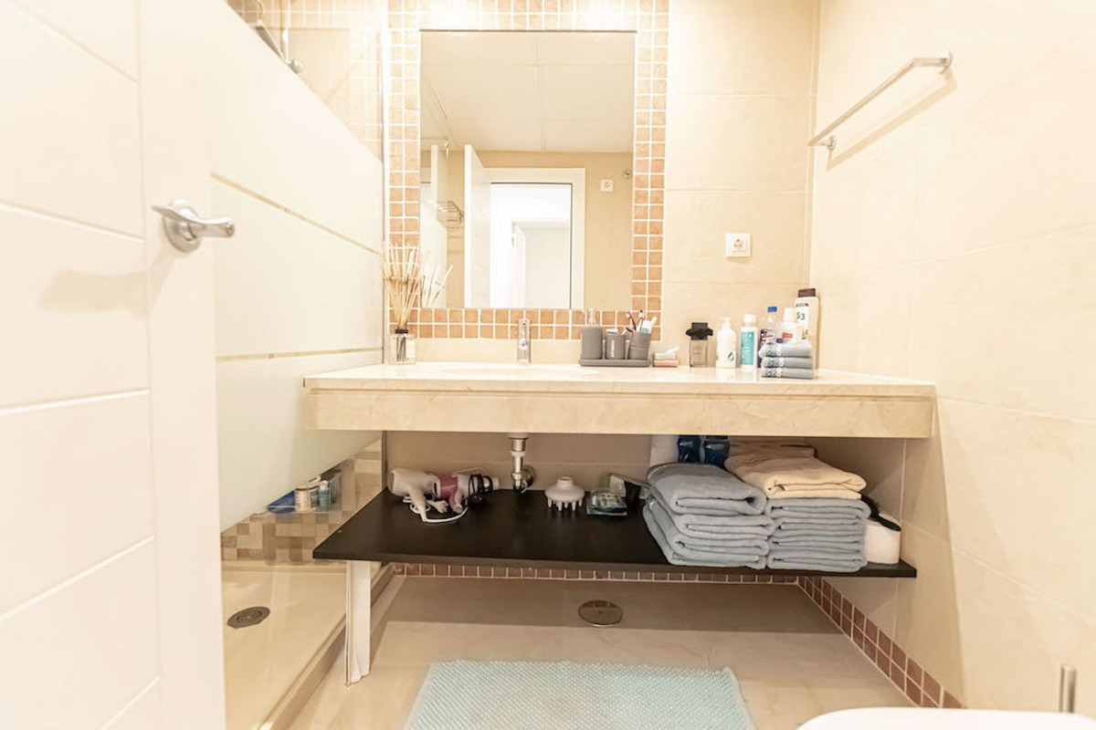The apartment stands out for its brightness and well-planned layout. It comprises three spacious bedrooms, two full bathrooms with walk-in showers, and a guest toilet, all finished with high-quality materials. The glazed terrace, facing southwest, invites you to enjoy charming views of the garden and the sea, bathed in the warm natural light that fills every corner of the home.