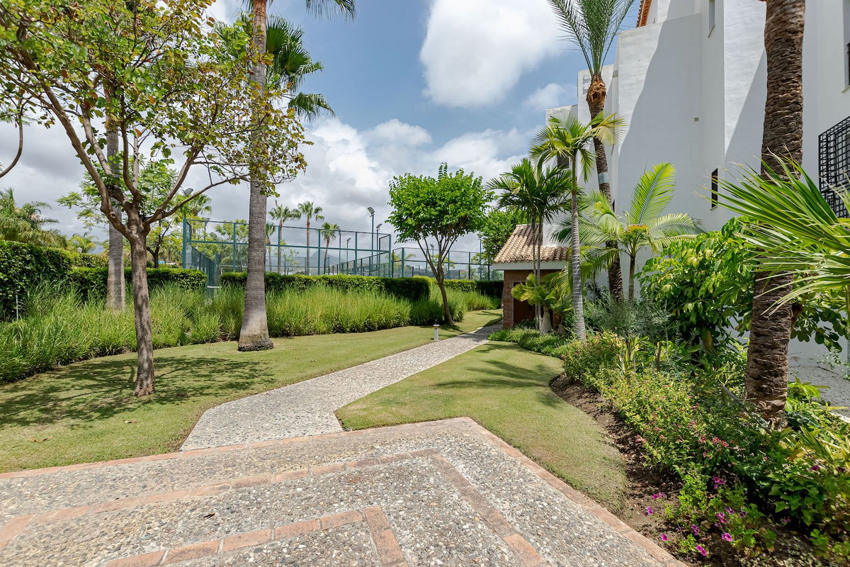 Nestled within one of the most exclusive and impeccably maintained residential complexes in the area, this distinguished ground-floor residence perfectly combines luxury, comfort, and Mediterranean style. The gated community offers a serene and refined atmosphere, featuring beautifully landscaped gardens, an elegant swimming pool, a separate children’s pool, and modern paddle courts — the ideal environment to enjoy a sophisticated and relaxed lifestyle.