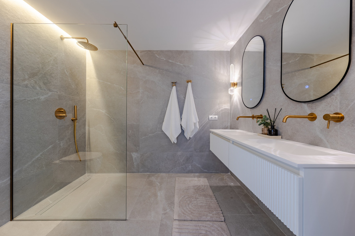 Mirador 5 offers modern design, generous space, and breathtaking views. The open-plan living area combines a bright lounge, dining space, and a fully equipped oak-panelled kitchen with a central island, leading onto a large terrace overlooking the golf course, La Concha mountain, and the sea.