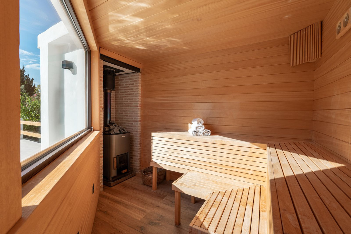 What makes this property truly special is the amazing outdoor space. Instead of a traditional garden, the villa offers many inviting seating and chill-out areas surrounded by beautiful planting and greenery, creating a relaxing atmosphere throughout. Outside you will also find a brand new private pool, an outdoor shower next to the pool, a fully equipped outdoor kitchen, a sauna and a cozy seating area with a fire pit, perfect for enjoying Marbella’s fantastic climate with family and friends.
