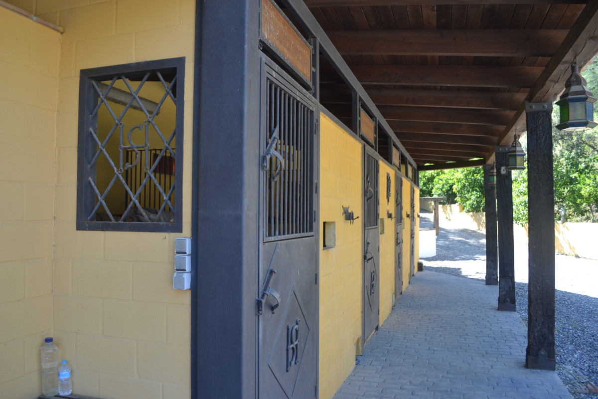 This beautiful Spanish estate is located between Coin and Guaro. It has 4 contiguous plots with a total area of approximately 50,000 m2. The finca is located halfway up the hill and has a large terrace, followed by the swimming pool, where you can enjoy the evenings. Close to the villa are the stables. Is a mini football field and an 'Ermita' which is used as a library. The finca has all permits for keeping horses and livestock.