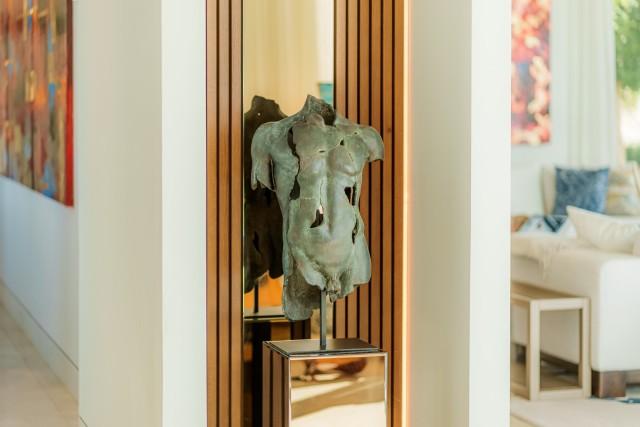 Beyond its core living spaces, this villa offers an unmatched collection of lifestyle amenities, including a private wine cellar, spa and sauna, home cinema, professional gym, executive office, and even a helipad for convenient travel. The landscaped gardens, with their sculptural greenery and artistic detail, reflect the same level of craftsmanship found within.